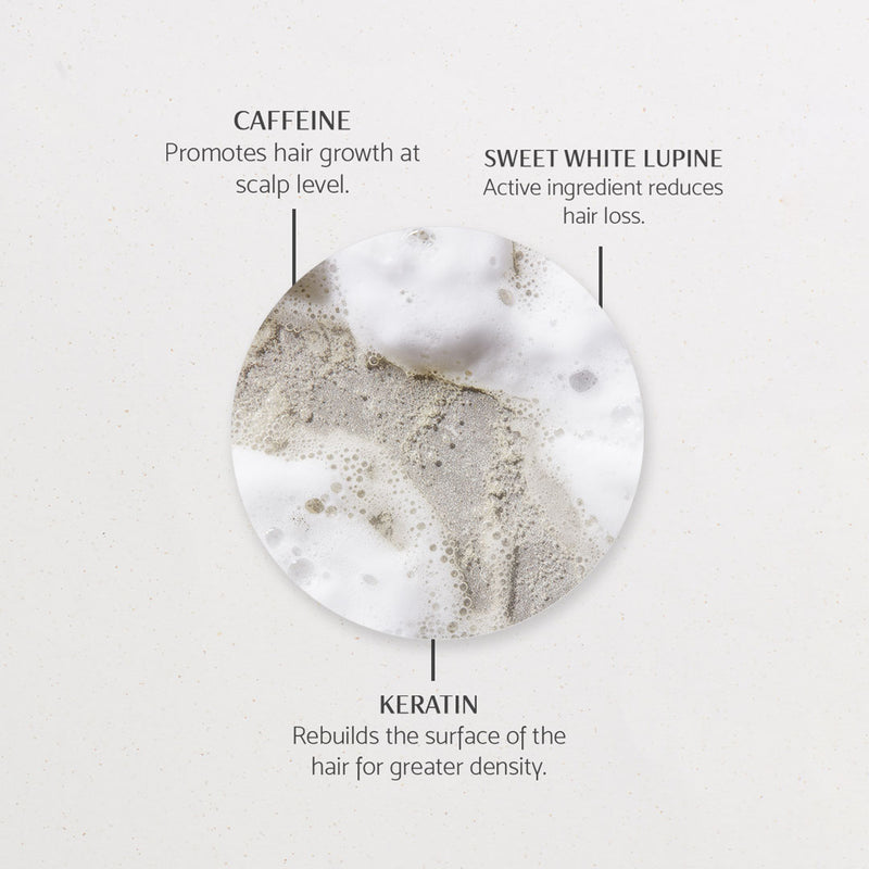 HAIR GROWTH: Active ingredient Sweet White Lupine encourages cell metabolism and circulation at scalp level, boosting new hair growth, whilst blocking the hormone responsible for hair loss (androgenic alopecia).